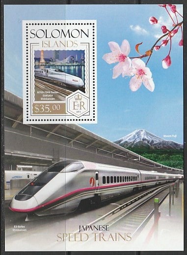 Соломоновы острова 2013 год. Японские высокоскоростные поезда, блок.