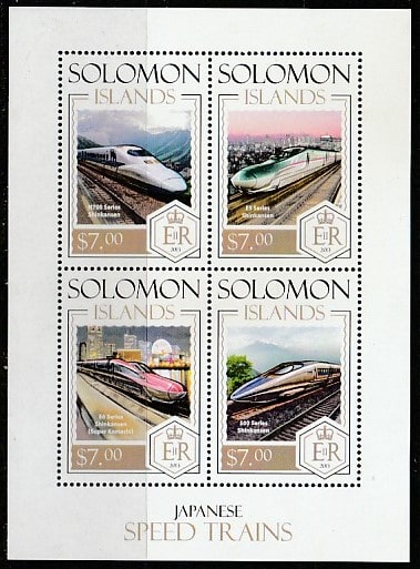 Соломоновы острова 2013 год. Японские высокоскоростные поезда, малый лист.