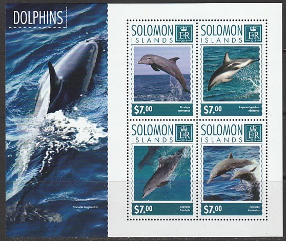 Соломоновы острова 2014 год. Дельфины, малый лист.