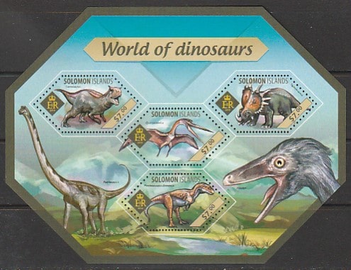 Соломоновы острова 2014 год. Динозавры, малый лист.
