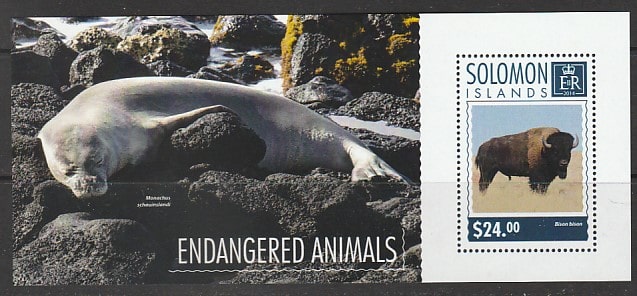 Соломоновы острова 2014 год. Исчезающие виды животных, блок.