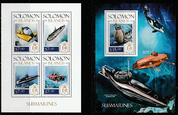 Соломоновы острова 2014 год. Субмарины, малый лист + блок.