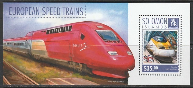 Соломоновы острова 2014 год. Высокоскоростные европейские поезда, блок.