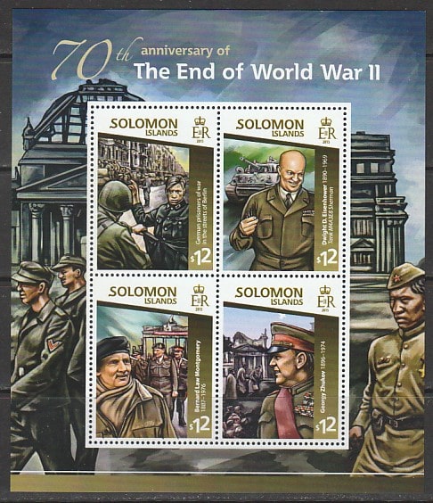 Соломоновы острова 2015 год. 70 лет окончанию II Мировой войны, малый лист.