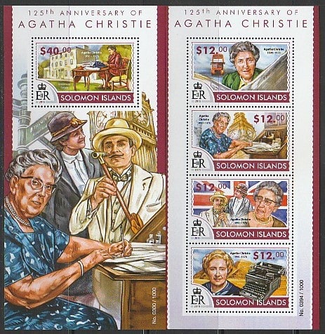Соломоновы острова 2015 год. Английская писательница Агата Кристи, малый лист + блок.