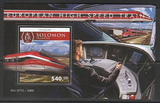 Соломоновы острова 2015 год. Европейские высокоскоростные поезда, блок.