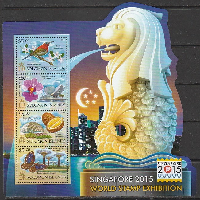 Соломоновы острова 2015 год. Международная филвыставка в Сингапуре. Флора и фауна, малый лист.