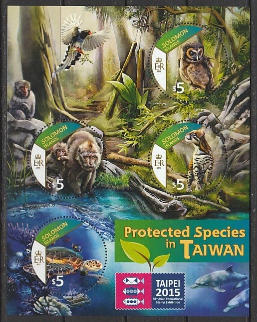 Соломоновы острова 2015 год. Международная филвыставка в Тайбэе. Фауна, малый лист.