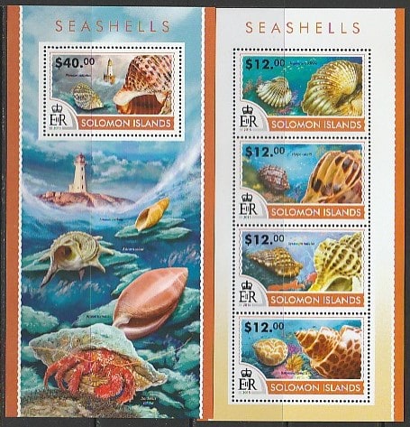 Соломоновы острова 2015 год. Морские раковины, малый лист + блок.
