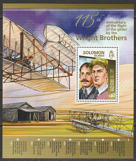 Соломоновы острова 2015 год. Пионеры авиации. Братья Райт, блок.