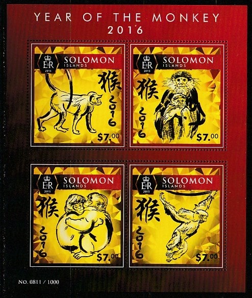 Соломоновы острова 2015 год. С наступающим годом Обезьяны, малый лист.
