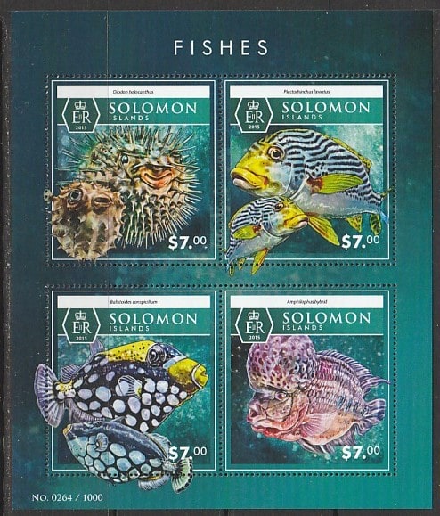 Соломоновы острова 2015 год. Тропические рыбы, малый лист.