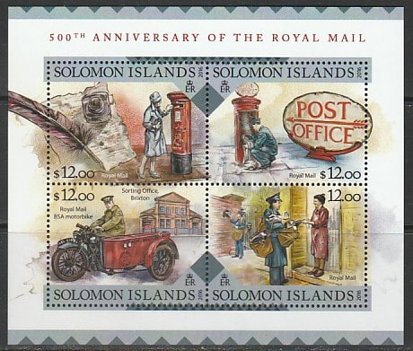 Соломоновы острова 2016 год. 500 лет Королевской почте, малый лист.