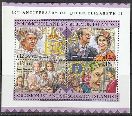 Соломоновы острова 2016 год. 90 лет со дня рождения королевы Елизаветы II, малый лист.