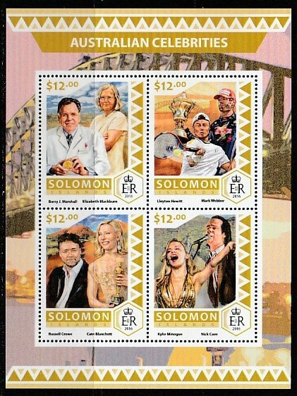 Соломоновы острова 2016 год. Австралийские знаменитости, малый лист.