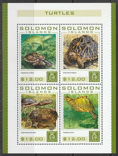 Соломоновы острова 2016 год. Черепахи, малый лист.
