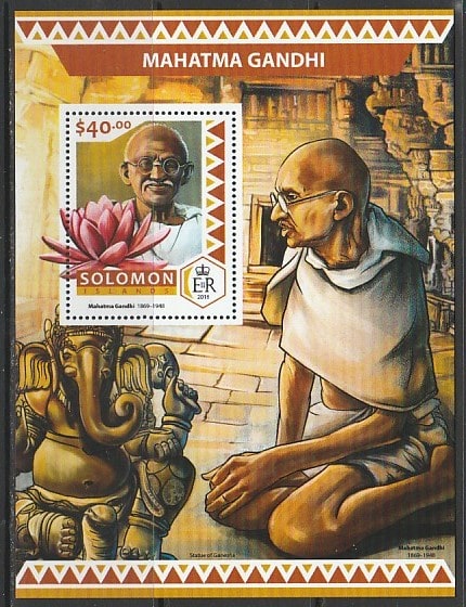 Соломоновы острова 2016 год. Индийский политик Махатма Ганди, блок.