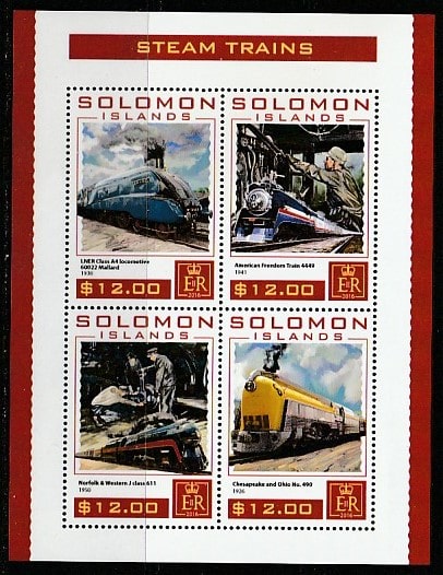 Соломоновы острова 2016 год. Паровозы, малый лист.