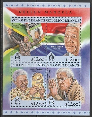 Соломоновы острова 2016 год. Южноафриканский политик Нельсон Манделла, малый лист.