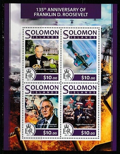Соломоновы острова 2017 год. 135 лет со дня рождения Франклина Рузвельта, малый лист.