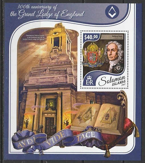Соломоновы острова 2017 год. 300 лет Великой ложи Англии. Масоны, блок.
