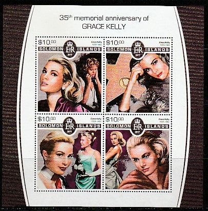 Соломоновы острова 2017 год. Американская актриса Грейс Келли, малый лист.