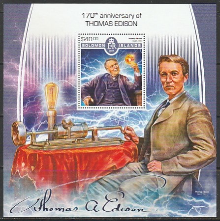 Соломоновы острова 2017 год. Американский изобретатель Томас Эдисон, блок.