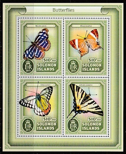 Соломоновы острова 2017 год. Бабочки, малый лист.