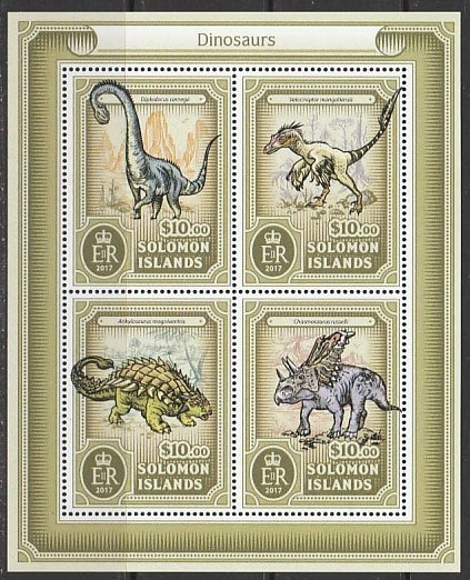 Соломоновы острова 2017 год. Динозавры, малый лист.
