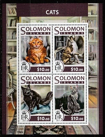 Соломоновы острова 2017 год. Домашние кошки, малый лист.