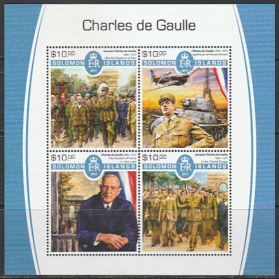 Соломоновы острова 2017 год. Французский генерал, политик Шарль де Голль, малый лист.