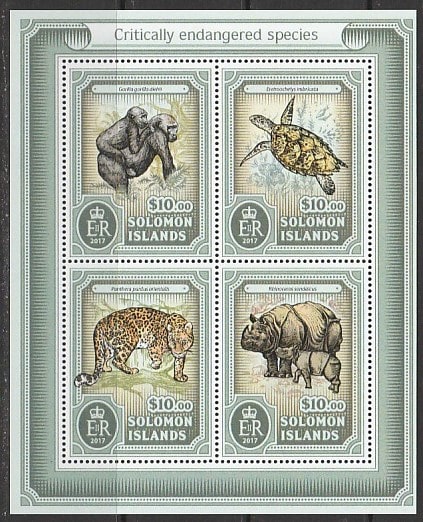 Соломоновы острова 2017 год. Исчезающие виды животных, малый лист.