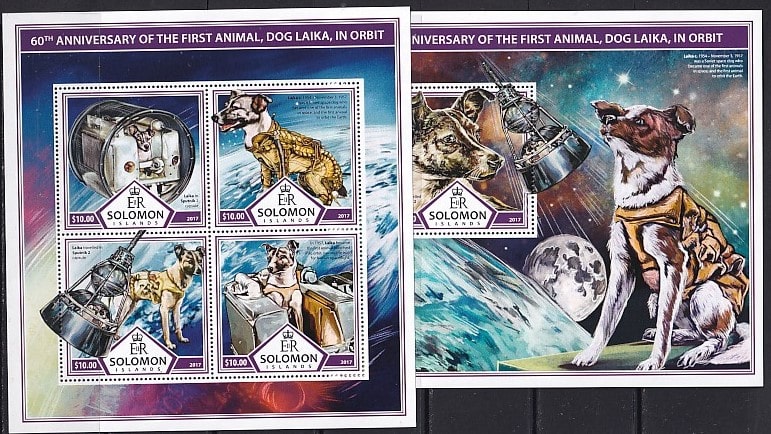 Соломоновы острова 2017 год. Лайка - первая собака в космосе, малый лист + блок
