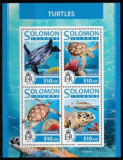 Соломоновы острова 2017 год. Морские черепахи, малый лист.