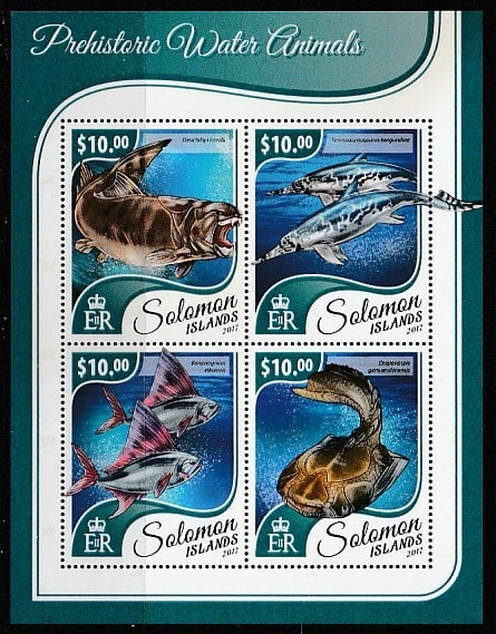 Соломоновы острова 2017 год. Морские доисторические животные, малый лист.