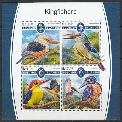 Соломоновы острова 2017 год. Птицы. Зимородки, малый лист.