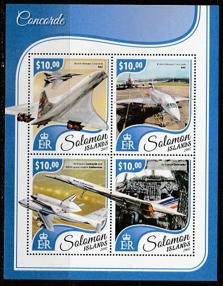 Соломоновы острова 2017 год. Сверхзвуковой пассажирский самолёт "Конкорд", малый лист.