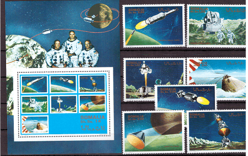 Сомали 1970 год. Космос. Аполлон-11. Первый человек на луне. 7 марок и блок