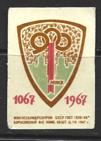 Спичечная этикетка. 900 лет Минску. 1967 год.