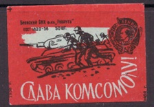 Спичечная этикетка. Слава комсомолу! 1958 год. 1 штука