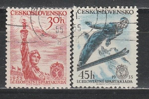 Спорт, ЧССР 1955, 2 гаш. марки