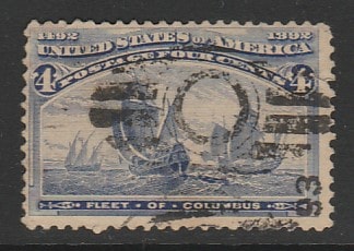 США 1893 год. 400 лет открытию Америки. Флот Колумба, 1 марка из серии (гашёная) (55/8 м)