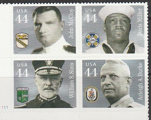 США 2010 год. Награждённые орденами моряки ВМФ, квартблок (самоклейка)