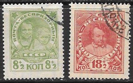 СССР 1927 год. Почтово-благотворительный выпуск. В помощь беспризорным детям, 2 марки гашёные