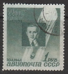СССР 1944 год. Памяти советских стратонавтов. И.Д. Усыскин,ном. 1 р., 1 марка из трёх (гашёная)