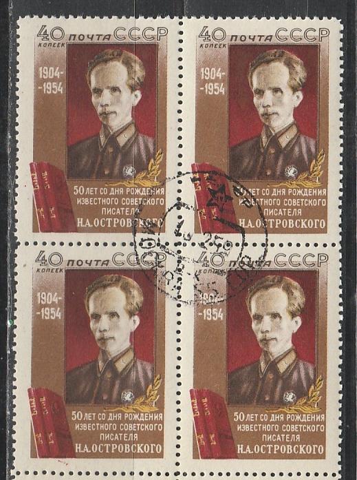 СССР 1954 г, Н. Островский, гаш. квартблок