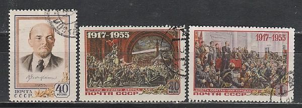 СССР 1955 год, 38-я годовщина ВОСР, 3 гашёные марки
