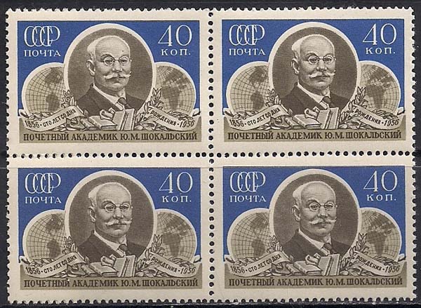СССР 1956 год. 100 лет со дня рождения географа Ю.М.Шокальского. 1 квартблок