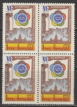 СССР 1957 год. Фестиваль молодёжи и студентов в Москве. Эмблема, флаг, квартблок