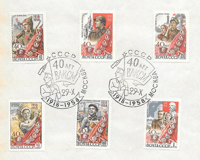 СССР 1958 год. 6 марок со спецгашением - 40 лет ВЛКСМ